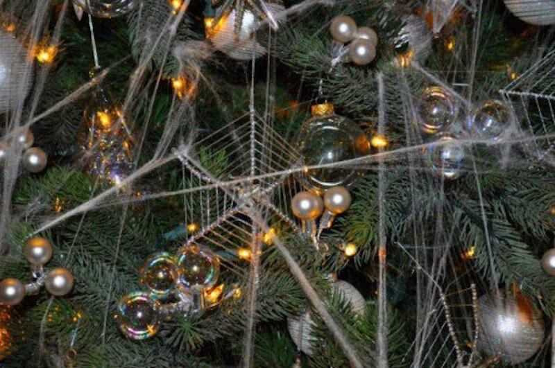 Mientras que aquí estamos acostumbrados adornar nuestros árboles de Navidad con bolas luminosos, estrellitas, figuritas o regalos, en Ucrania se usan simulaciones de telas de araña para atraer la buena fortuna. Dicha tradición se remonta a la historia de una familia que no tenía recursos para cuidar su árbol, le salieron telarañas y éstas se volvieron relucientes y de seda, plateadas y doradas al salir el sol.