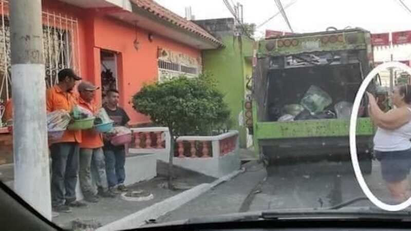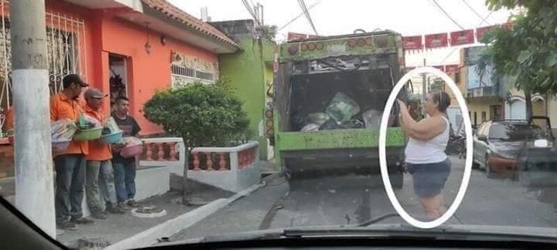 En las redes sociales circulan fotografías de una mujer haciendo un obsequio navideño a los recolectores de basura.