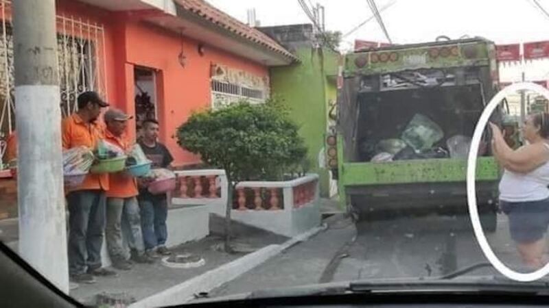 La mujer fue captada cuando entregaba canastas navideñas a los recolectores de basura.