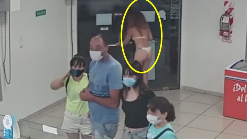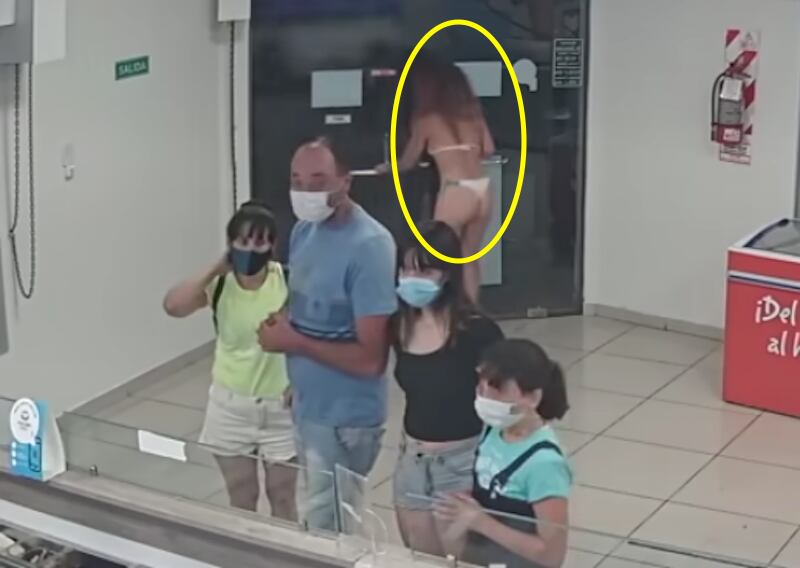 Y ante la negativa de los trabajadores de dejar ingresar a un grupo de 11 personas que no usaban mascarillas, una mujer se sacó su vestido, se cubrió parte del rostro con él y entró en ropa interior al local.