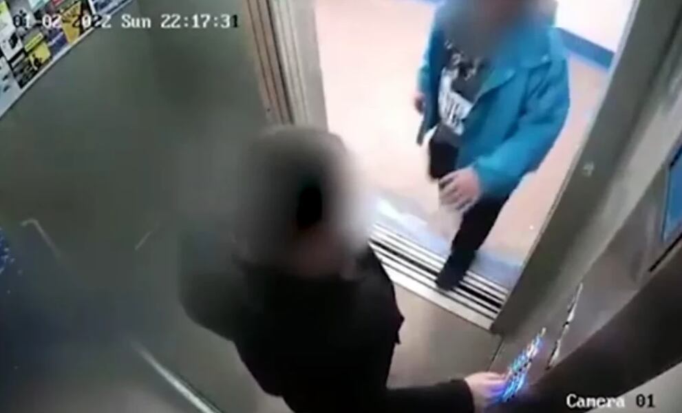 De acuerdo con el video de la denuncia, la menor permanece encerrada en el ascensor con el agresor de 27 años, el cual empieza a mirarla de una manera violenta mientras le dice cosas obscenas.