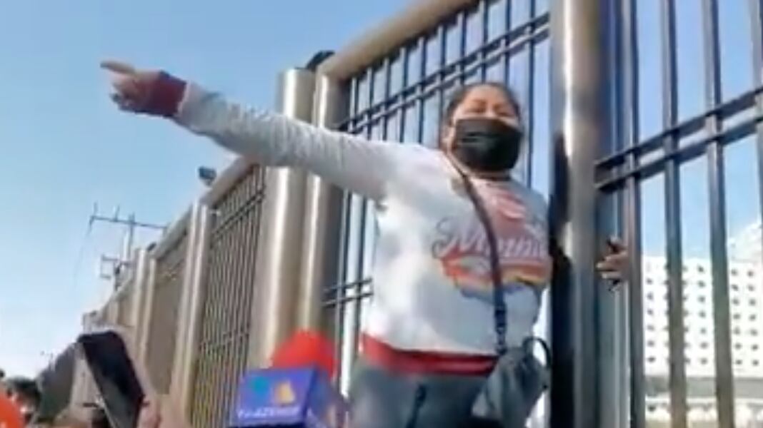 “No te estoy pidiendo que me lo regales, solamente déjame pasar para comprar uno. No me voy a bajar”, le explica la mujer a los elementos de seguridad.