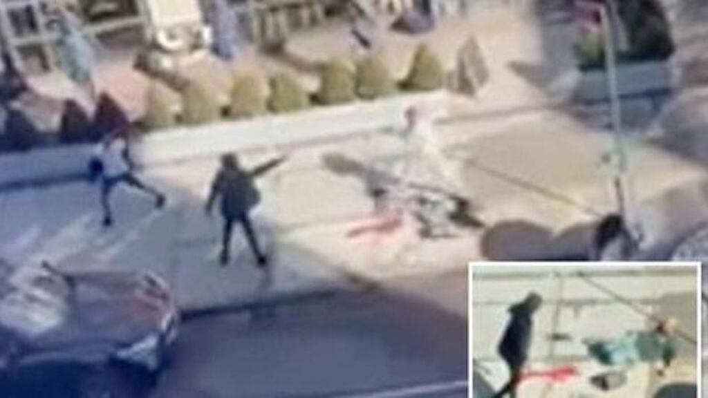 En la grabación se ve a un sujeto sacar su arma y disparar tres veces mientras camina hacia el empleado, quien se tira a la acera mientras se escucha a una mujer gritar de fondo.