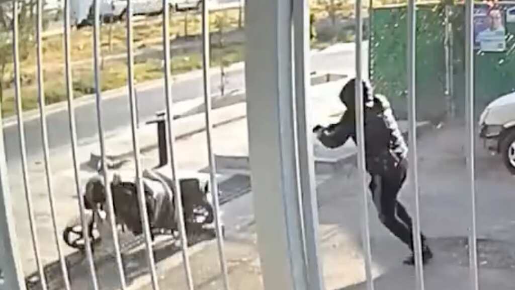 Las cámaras de seguridad captaron el momento en que un sicario balea a un motociclista en las calles de la ciudad de Zapopan, en Jalisco, México, estado donde tiene su base de operaciones el Cártel Jalisco Nueva Generación (CJNG), fundado por Nemesio Oseguera Cervantes, alias el Mencho.