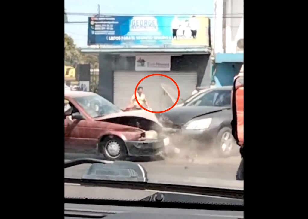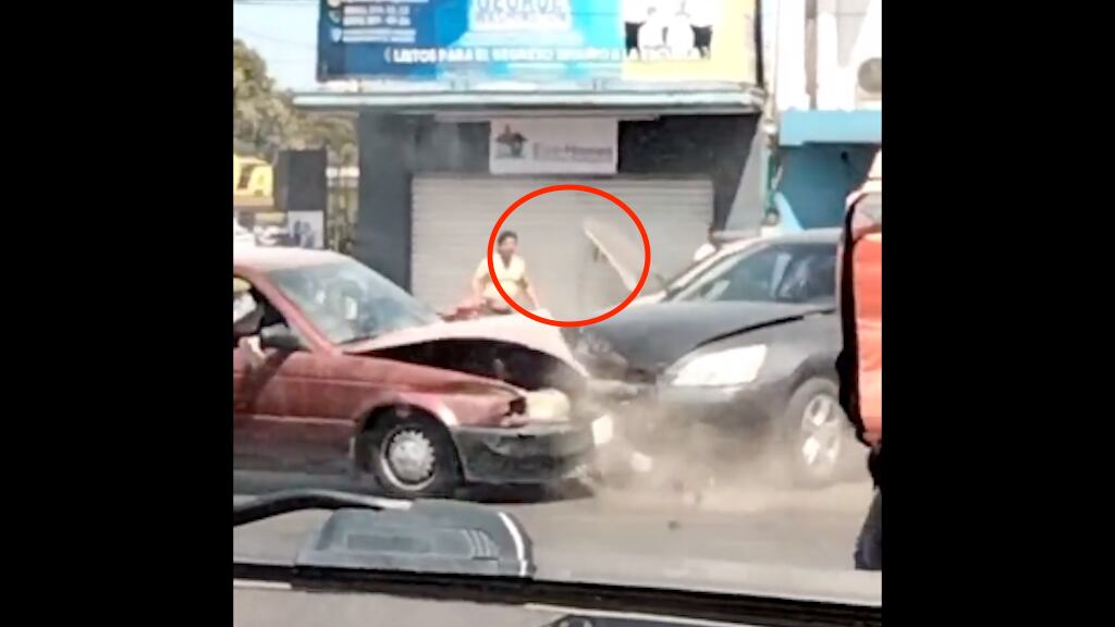 Luego del choque provocado por estar al pendiente del señor que estaba tratando de apagar el fuego de su auto, se observa que a la colisión llegan personas para brindar ayuda, ya que, en uno de los autos había menores de edad.