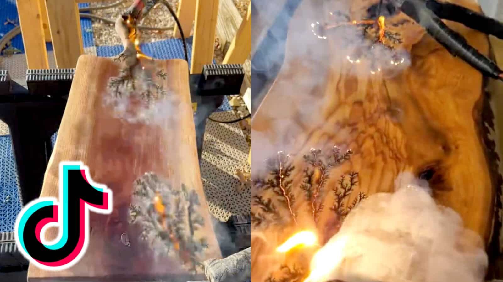 La quema de madera fractal combina electricidad de alto voltaje y una solución química para grabar diseños intrincados en losas de madera.