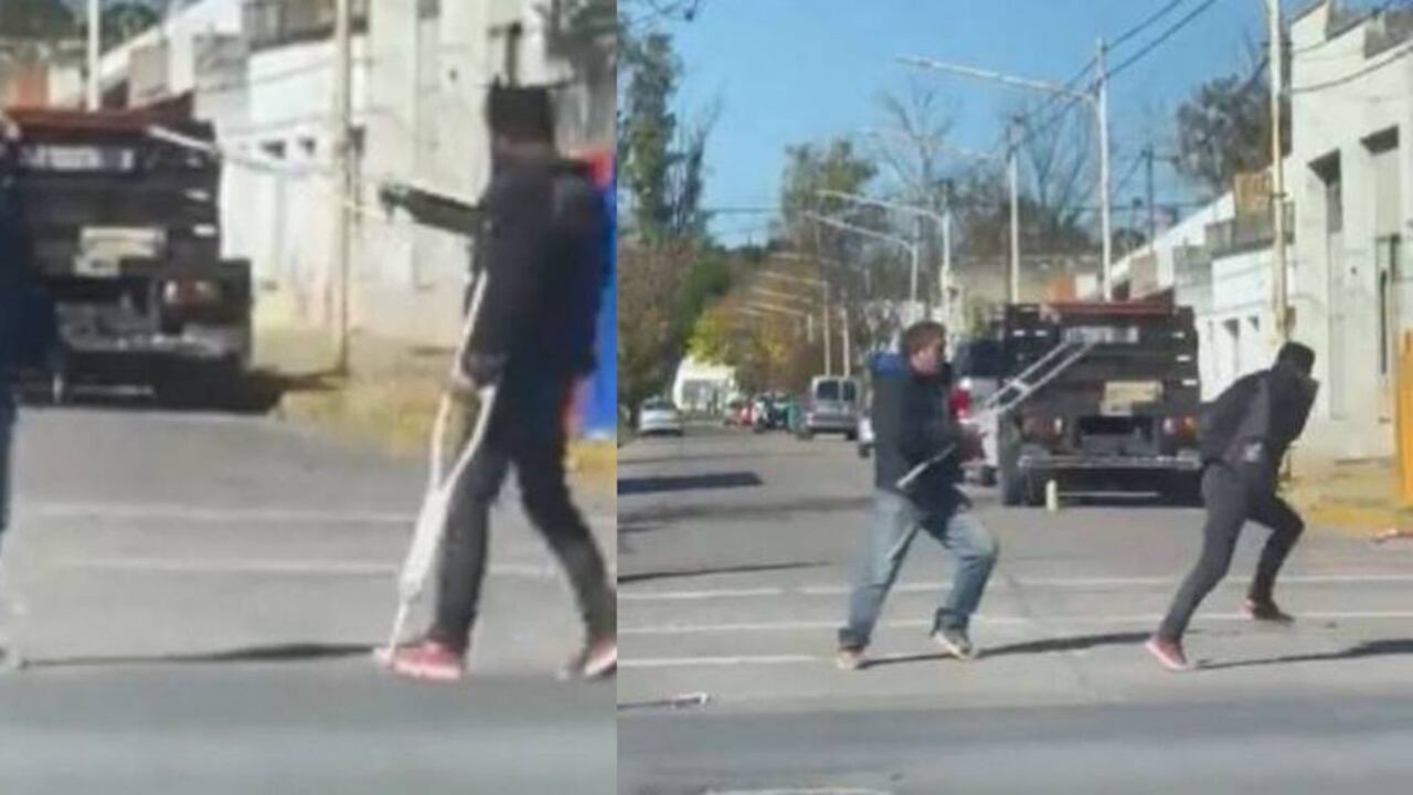 Los presentes trataron de frenar la pelea, creyendo que el hombre realmente tenía problemas en sus piernas. Es por eso que al ver que el motociclista le pateaba una de las muletas, los testigos comenzaron a gritar. Sin embargo, rápidamente las muletas se transformaron en un arma para el vagabundo que no paraba de pegar.