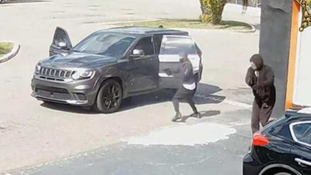 Inicialmente, sale de una camioneta un pistolero y luego los otros dos. Los sospechosos le disparan a la víctima que estaba sentado en el interior de su vehículo.