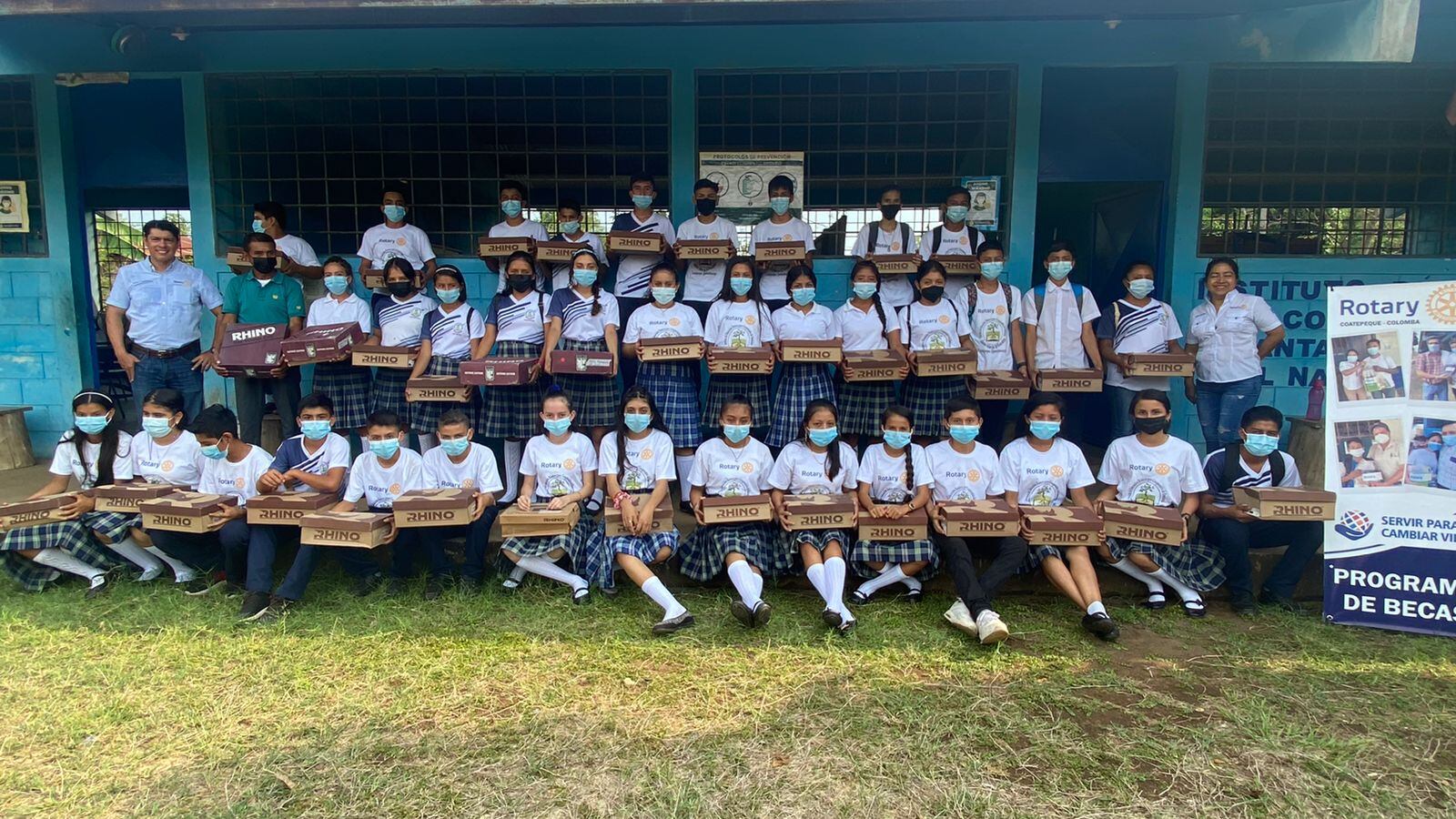 Además, también apoyó al Club Rotario Coatepeque Colombia con 100 pares de calzado para los Bomberos Municipales del Cantón Las Delicias, Colomba Costa Cuca. La donación se realizó al Instituto Básico por Cooperativa San Rafael Pacaya #1 y a los alumnos becados del Instituto Básico por Cooperativa Santa María El Naranjo.