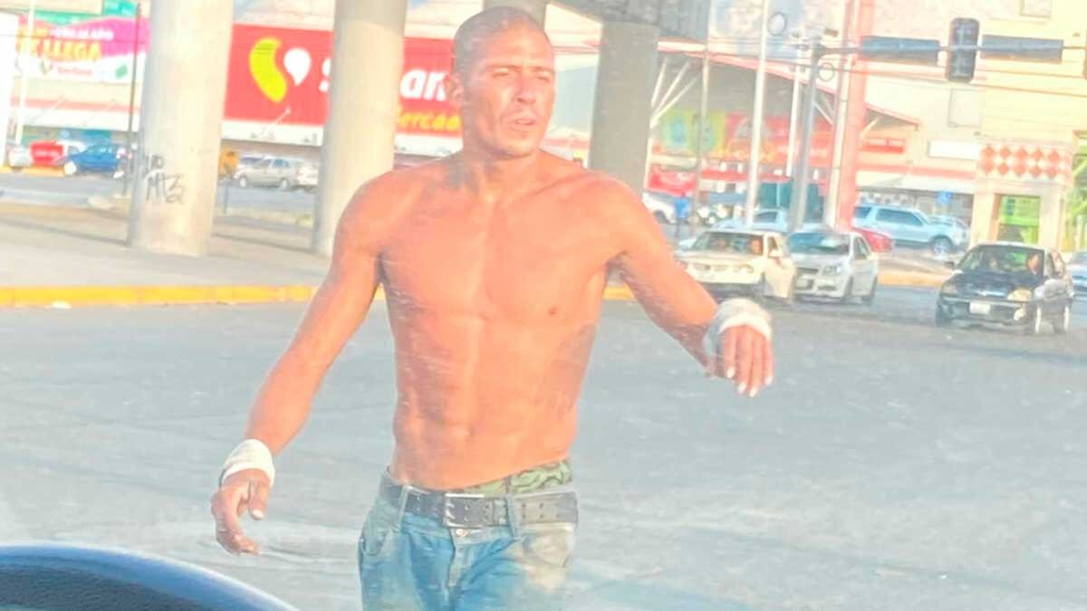 Las imágenes del limpiaparabrisas musculoso son más que evidentes, pues se aprecia a un hombre con cuerpo totalmente tonificado (y que le llevaría meses o años a varios), luce sin playera y sólo usa un pantalón de mezclilla (algo sucio), además de lo que parecieran ser un par de vendas en sus muñecas.