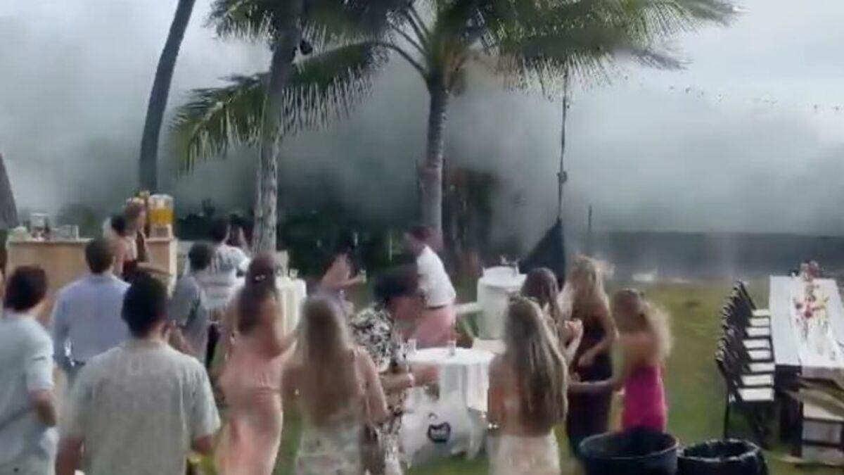 Una boda que se celebró en Hawaii fue interrumpida por una serie de olas gigantes que arrasaron con los preparativos del día más feliz de la vida de una pareja.