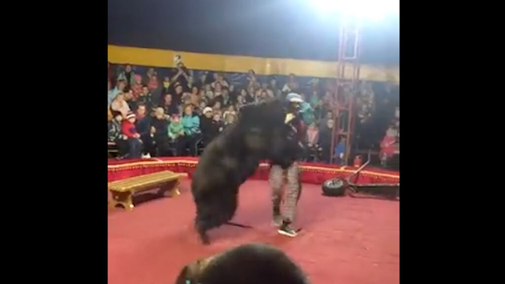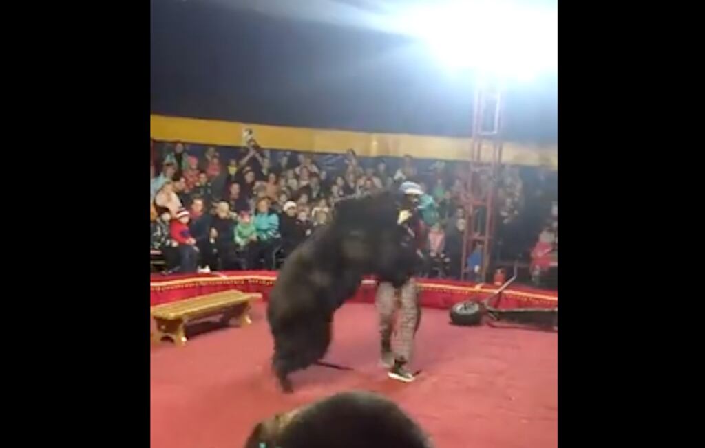 Un oso de circo se volvió viral en redes sociales luego de que atacara a su domador durante una función, al parecer en un circo de Rusia. En el video compartido por usuarios, se ve al animal, en un primer momento, seguir las indicaciones de su domador para espectáculo de la gente.
