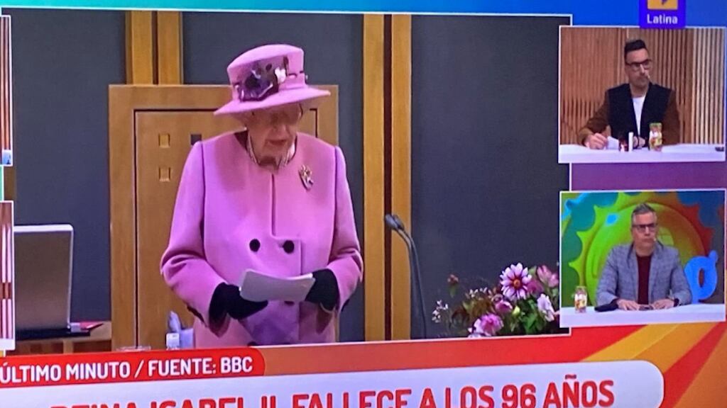 La intervención de Lemes, leyendo el tuit falso, fue como sigue: “Acaban de confirmar, la BBC… se convocarán 10 días de luto oficial por la muerte de la Reina Isabel II”.