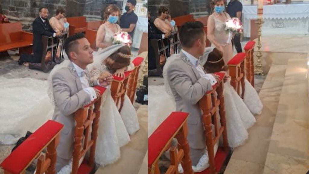 Como se puede ver en un video difundido en redes sociales, la pareja de novios se encontraba muy concentrada en la misa. Incluso, estaban tomados de la mano. Pero, fue de un momento a otro, la mujer se empezó a desvanecer y generó la preocupación de todos los invitados.