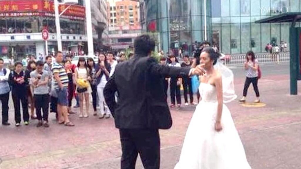 El video también muestra a algunos de los invitados a la boda unirse para ayudar a la novia para que se ponga de pie mientras le dicen que deje de llorar.