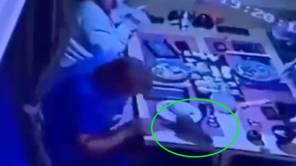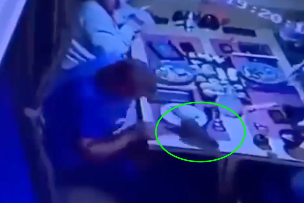 Las imágenes dan cuenta del momento exacto en que el roedor, de gran tamaño, cae, aparentemente de la pared sobre la espalda del cliente que degustaba sus alimentos. Al momento en que la rata se posó sobre el cuerpo del cliente, éste voltea para ver de qué se trata y descubre al animal que, sin demora, salta a la mesa.