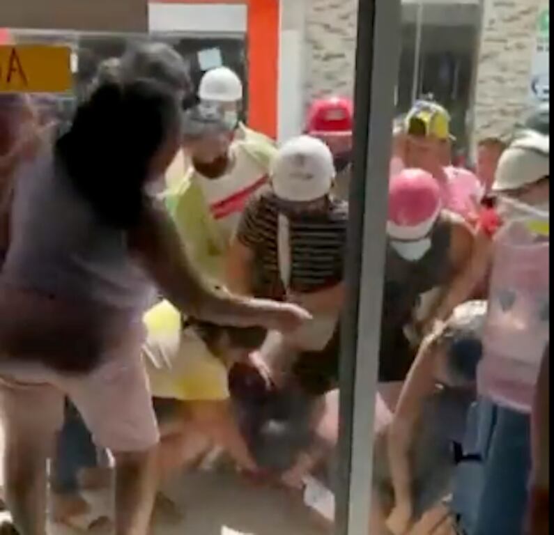 Sin embargo, la emoción por tener un par de los zapatos regalados llevó a las mujeres a enfrentarse en calles de Yucatán, en México. Las imágenes dan cuenta de cómo una mujer coloca el cuerpo sobre una caja de zapatos mientras otras más intentan quitársela.