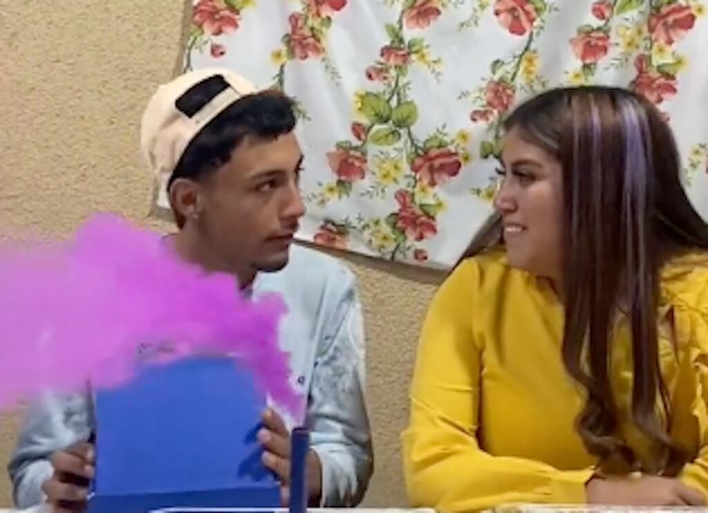 En un video que se viralizó en redes sociales se da cuenta del momento chusco en que un joven festeja su cumpleaños con su novia, pero se le borra la sonrisa al ver el color de la vela de su pastel y el mensaje en un regalo que dice “¡Hola papá!”.