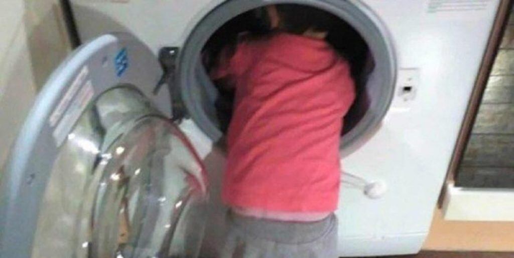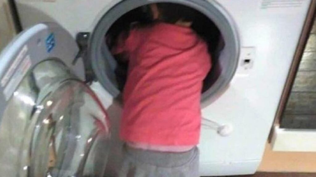De acuerdo con los usuarios de redes sociales, el niño se habría quedado atorado en la canastilla de secado, aunque se desconoce el motivo por el cual terminó al interior de la máquina.