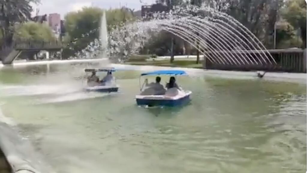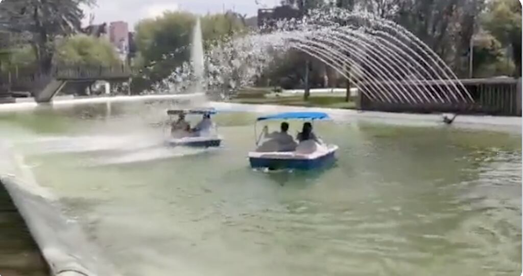 Un paseo tranquilo en un lancha de pedales tuvo un final inesperado para sus ocupantes, quienes terminaron mojados tras ser víctimas de los chorros de agua del pequeño lago artificial en el que daban la vuelta. En la grabación, subida a redes sociales como Twitter, se observa a los ocupantes paseando tranquilamente a lo largo y ancho de la laguna. Nada parece molestarlos y el Sol ilumina lo que debería ser un paseo tranquilo y lleno de paz, hasta que de repente todo se sale de control.
