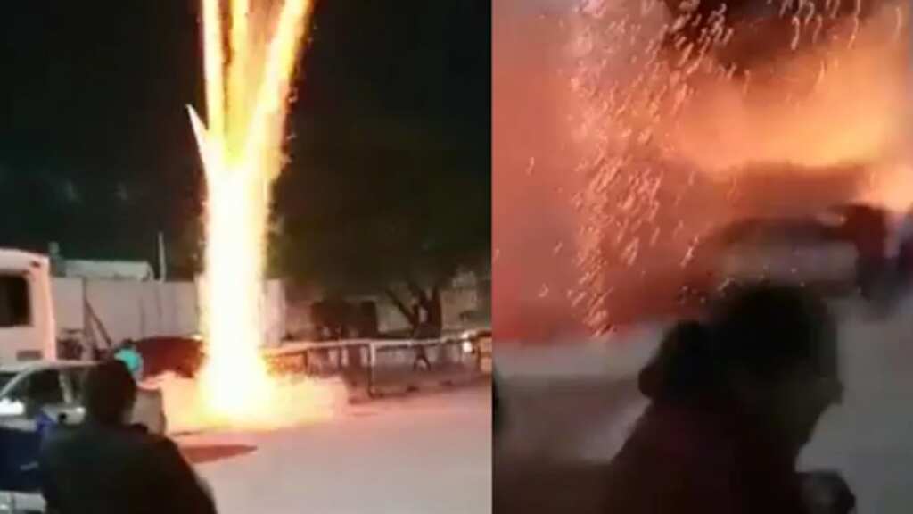 En redes sociales circula una grabación en la que se puede ver que en la parte exterior del templo religioso hay una base larga en donde está los fuegos artificiales y dos hombres, uno en cada extremo, los encienden. Los primeros cohetes comienzan a subir al cielo, cuando, de pronto ocurre una fuerte explosión, que hace que todas las personas que miraban el espectáculo corrieran para cubrirse. Además, se escucha que una persona menciona: “se cayeron lo cohetes”.
