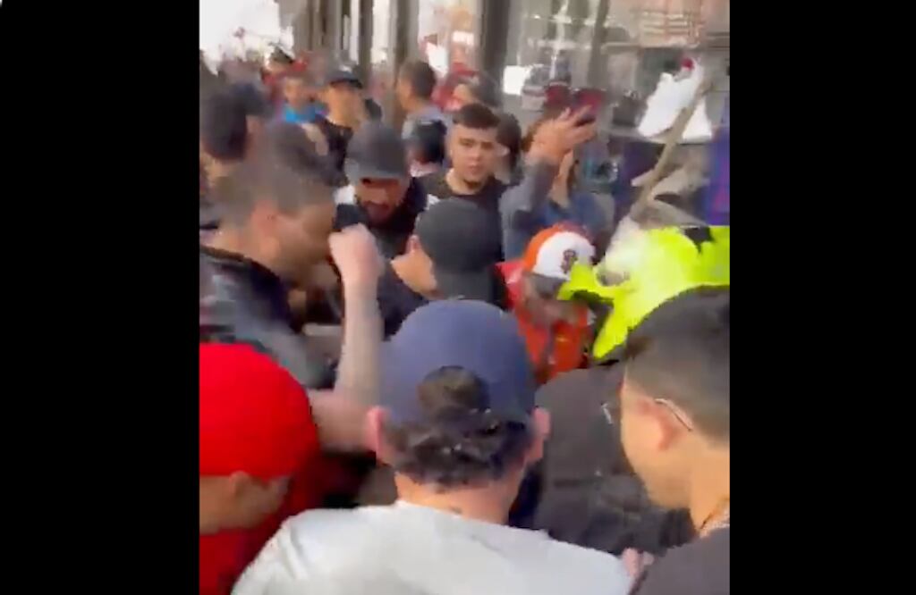 En videos quedó registrado el momento en el que golpean al ladrón, al momento de ver a los agentes de la Policía, el hombre se refugia en los pies de uno de los uniformados para tratar de evitar que lo linchen.