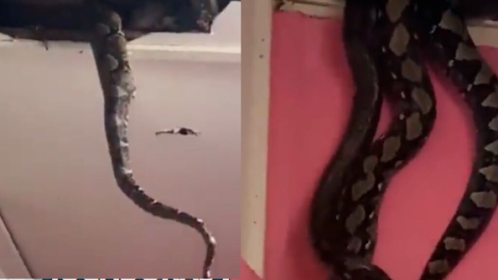 El padre confundido, de nombre Som Salleh, de 57 años, fue a inspeccionar pero se sorprendió al descubrir la cola de una de las serpientes saliendo de un orificio en el techo de una habitación. Imágenes virales en redes sociales revelan a los reptiles enredados entre sí mientras mientras los socorristas las extraían con un palo de captura. A pesar de caer, aún se aferraban a las vigas.