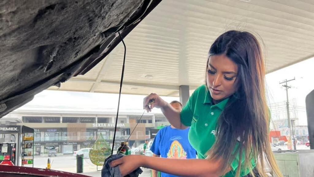 La joven viral se encarga de verificar los niveles de aceite de los vehículos, limpiavidrios y hasta echa aire a las llantas si los clientes lo requieren, para ganarse un peso extra. Señaló que en días buenos las propinas son de hasta 400 pesos mexicanos.