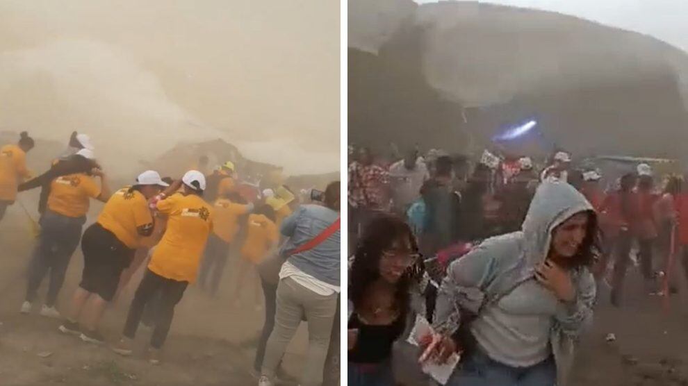 Fuertes vientos ocasionaron la caída de lonas en el municipio de Tecámac, Estado de México, previo a un evento de campaña de la candidata a la gubernatura, Alejandra del Moral, incidente que fue grabado por algunos asistentes al evento. A través de redes sociales, se compartió el momento exacto en que se alejaba del lugar donde fueron colocadas los toldos para el mitin, debido a que la estructura no soportó la fuerza del aire que se presentó la tarde de este jueves 27 de abril.
