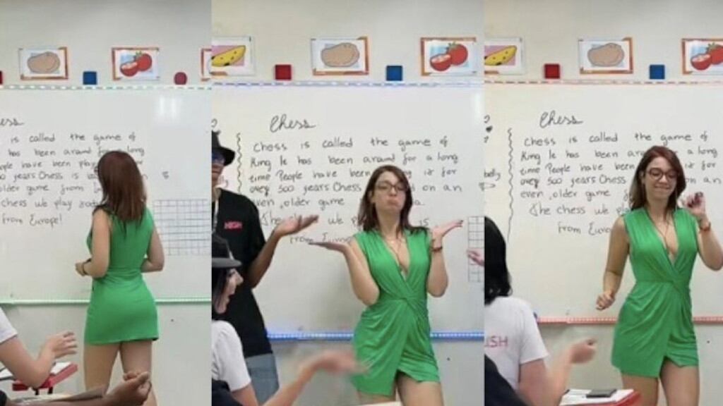 Se trata de Cibelly Ferreira, quien subió un video en TikTok en el que muestra su talento para bailar al interior de un salón de clases, con un vestido corto de color verde y con los alumnos presentes.