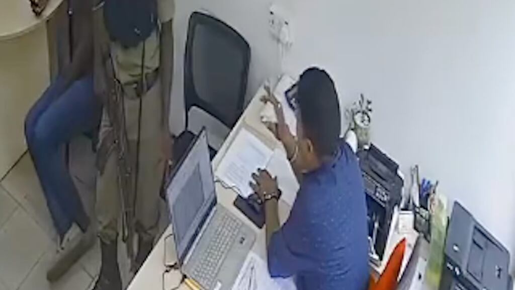 En Uganda, un policía adscrito a la corporación de Kampala, abrió fuego dentro de un banco en el que se ofrecen servicios de préstamos de dinero; en redes sociales circula un video que muestra cómo el elemento, tras tener una aparente comunicación con un hombre que está detrás de un escritorio, corta cartucho y comienza a dispararles a los clientes y empleados.