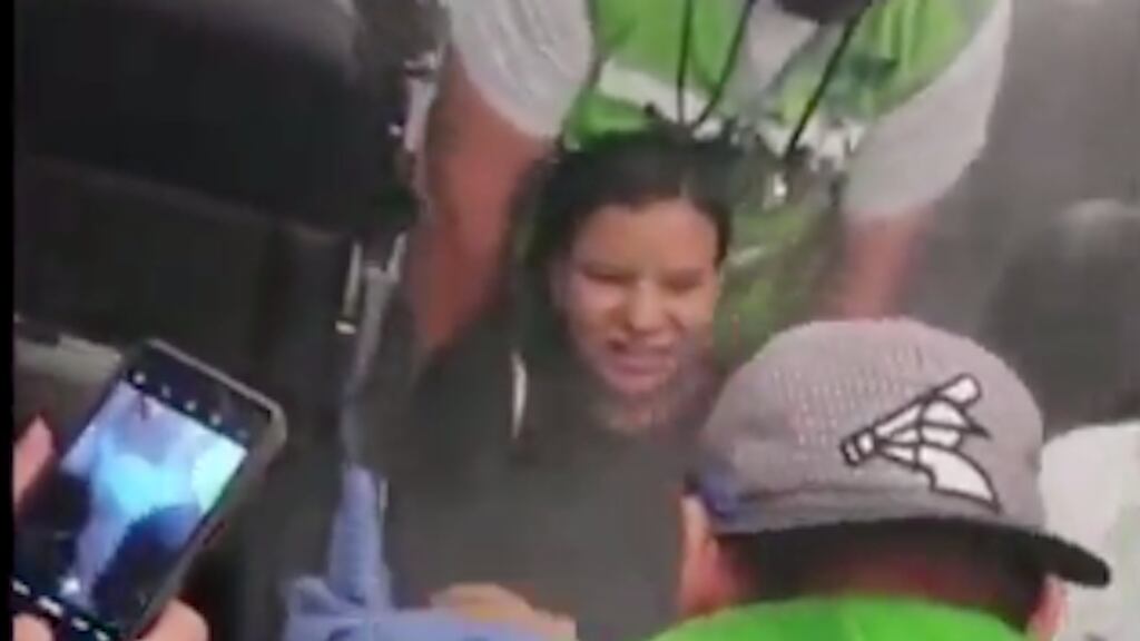 En redes sociales se difundieron las imágenes en las que se aprecia cómo la nueva mamá es sacada en silla de ruedas mientras la bebé es cargada por un paramédico. Cuando avanzan por el avión para descender de él, las personas aplauden y la felicitan, se escucha decir a alguien “Felicidades, que Dios las bendiga”.