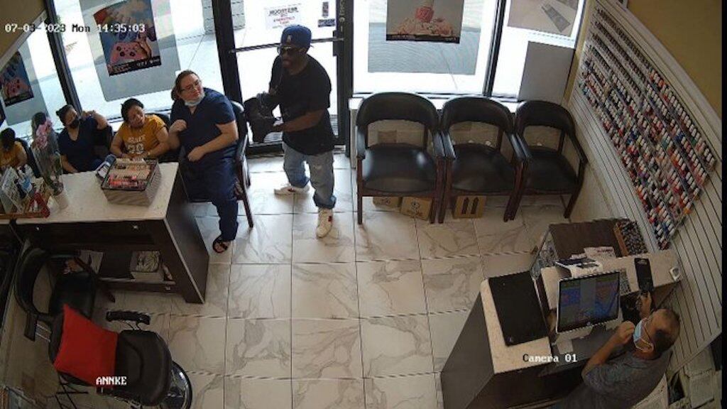 El video del incidente fue divulgado por las autoridades policiales. En las imágenes se puede apreciar a un individuo ingresando a Nail 1st y exigiendo de manera enérgica que las personas entreguen su dinero. Sin embargo, sus intentos de intimidar a los presentes resultaron infructuosos.