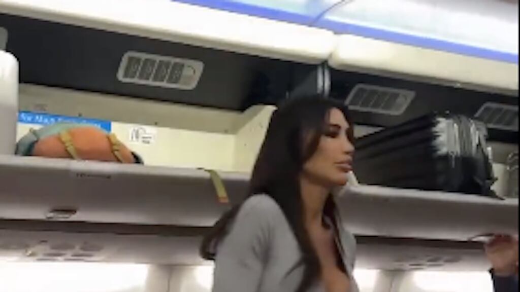 “¡Llámame pe*** otra vez, no hice nada malo!, llámame idiota otra vez. Grábame. Soy famosa en Instagram, mald** vagabundo”, dijo Morgan Osman antes de bajar de la aeronave.
