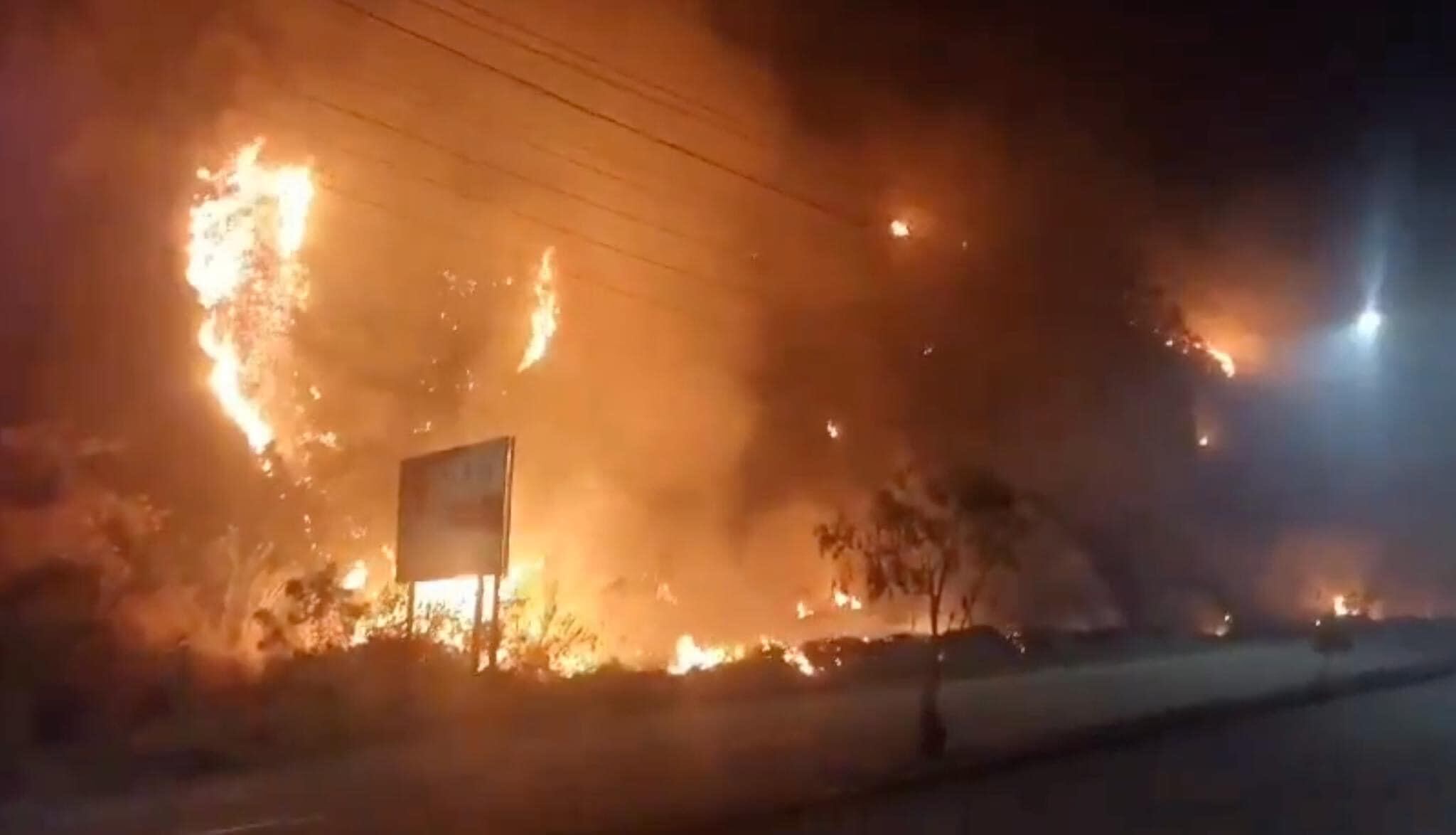Un incendio forestal es combatido por bomberos de distintos cuerpos en un terreno en San José Villa Nueva y en el ingreso de Hacienda de las Flores, el cual amenaza con alcanzar viviendas.