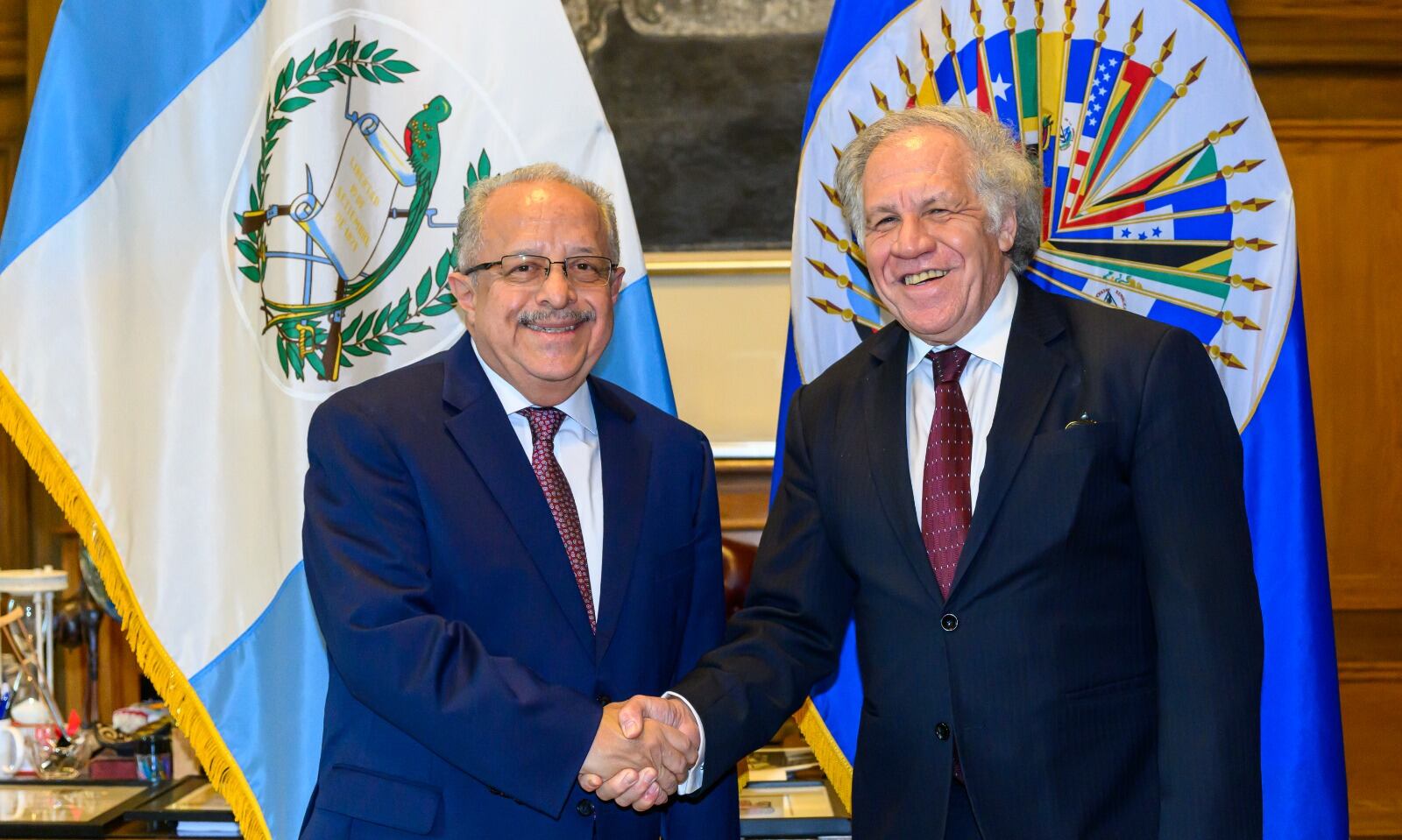 “Productiva y grata reunión con el canciller de Guatemala, Carlos Ramiro Martínez; y el asesor y enviado especial, Francisco Villagrán. Oportunidad resultó importante para reafirmar el diálogo y los canales de cooperación entre Guatemala y la Secretaría General de la OEA en temas de democracia, derechos humanos, desarrollo integral y seguridad multidimensional”, expuso el diplomático.