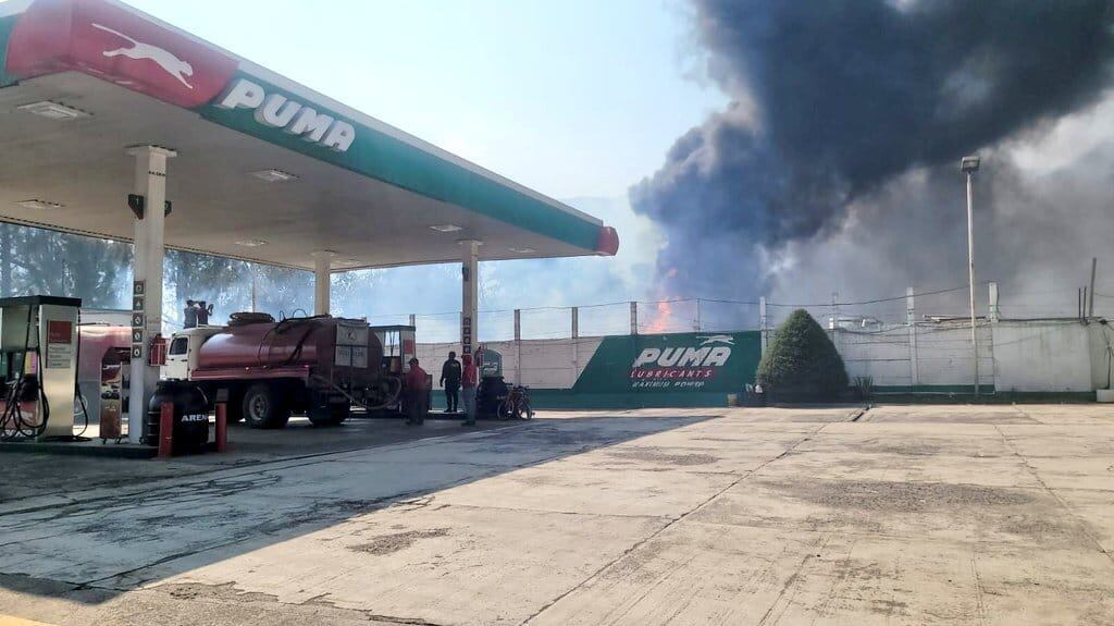 Socorristas llegaron al lugar para sofocar el fuego y trataron de controlarlo para evitar que alcanzara al expendio de combustible. Informaron que el fuego consumió tubos de PVC utilizados en drenajes.