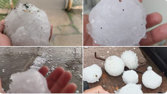 Los pobladores compartieron en redes sociales videos e imágenes que se han vuelto virales, que muestran lo enorme de las bolas de hielo.