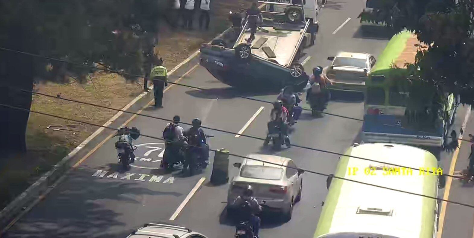 Este domingo 17 de marzo se registró un accidente vehicular en la calzada Roosevelt. “Vehículo volcado en km 13 calzada Roosevelt con dirección a Guatemala, grúa realiza maniobras para movilizarlo, al momento se detiene la circulación de los 3 carriles con dirección a oriente”, explicaron las autoridades de tránsito de Mixco. Después de una hora aproximadamente el vehículo fue retirado del lugar.