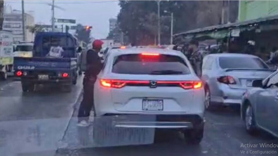 Su objetivo parece ser una camioneta deportiva blanca, el conductor tiene los vidrios abajo, por lo que parece facilitar la situación. Uno de los delincuentes, se acerca directo a la ventana del conductor, este porta una mochila donde seguramente guardará todo lo robado.