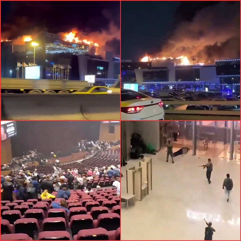 El sitio donde acaba de ocurrir un tiroteo en Moscú, Rusia, ahora está en llamas. Al menos 40 fallecidos. ¡Imágenes fuertes!