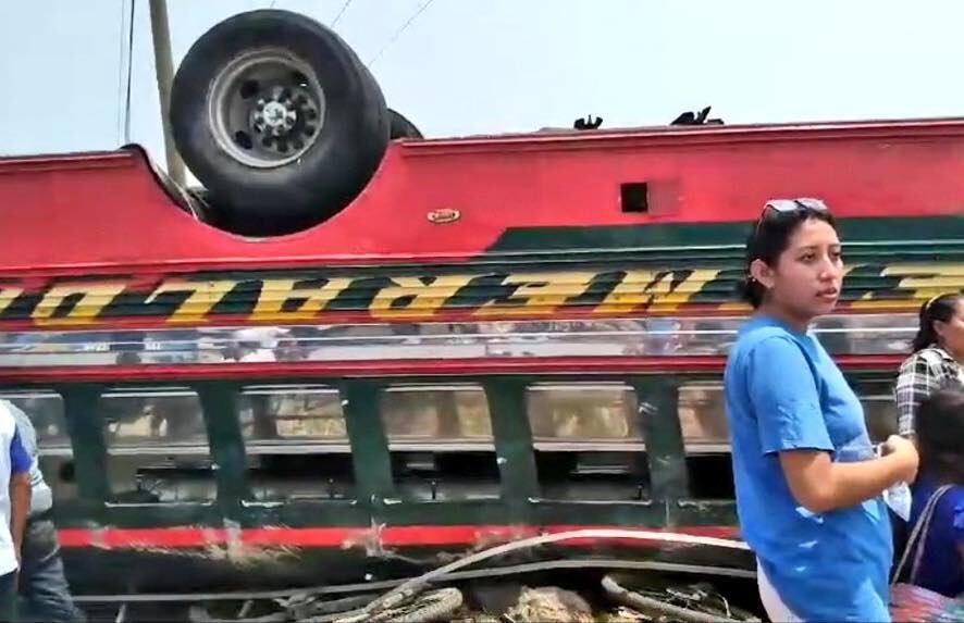 El conductor de un bus de transportes Esmeralda, por motivos que se desconocen, perdió el control del vehículo y colisionó de frete con el picop, luego la unidad volcó.