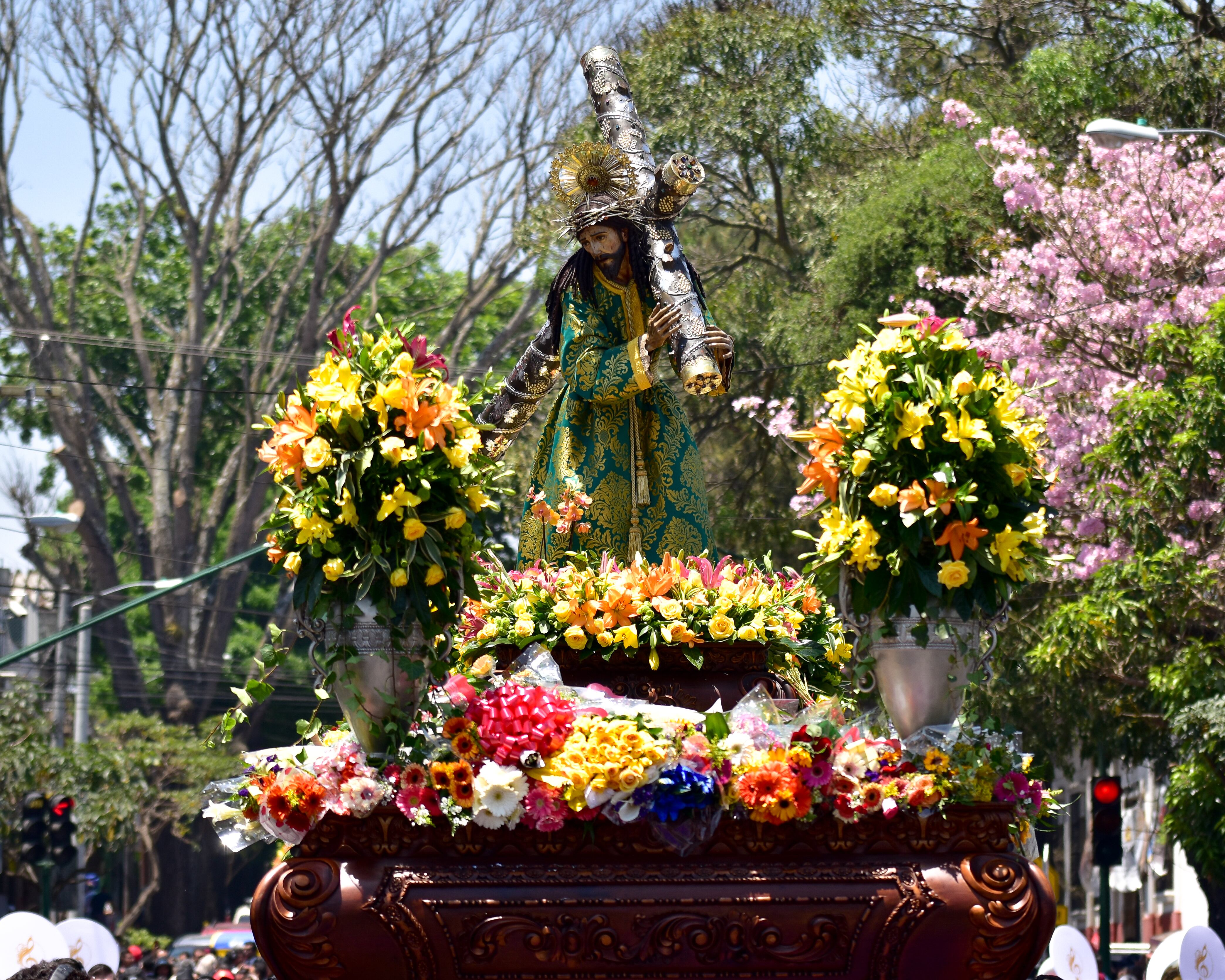 Durante su recorrido por las principales calles y avenidas de la ciudad de Guatemala, los feligreses lanzaron miles de ramos y arreglos florales, convirtiendo el momento en inolvidable, pues estuvo acompañado del vibrato de las marchas fúnebres, el olor a incienso y el colorido de las alfombras.
