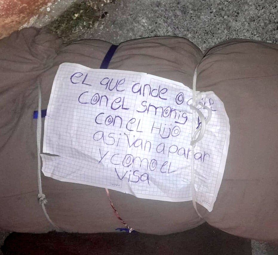 Las autoridades aún no confirman la identidad y el género de las víctimas, pero no se descarta que el caso esté relacionado a un ajuste de cuentas. “El que ande o —- con el Smonig o con el Hijo así van a parar y como el Visa”, es el mensaje que tienen los cuerpos.