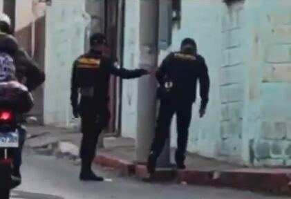 Vecinos de la zona 3 de la ciudad captaron a dos agentes de la Policía Nacional Civil en supuesto estado de ebriedad.