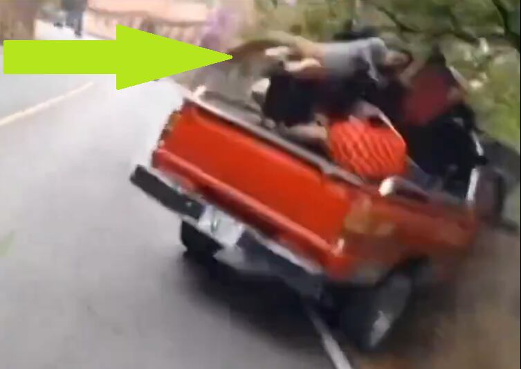 Bomberos atendieron a varios adultos y 4 niñas heridos. También se observa como uno de las personas que viajaban en el picop sale volando en el aire, pero cae parado.