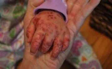 Esta enfermedad también es conocida como enfermedad de Boca Mano Pie, esta se manifiesta con salpullido en manos y pies y llagas dolorosas en la boca, ya sea en el exterior, encías, lengua o paladar.