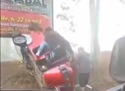 El video muestra el momento en el que un tuc tuc volcó en una de las peligrosas carreteras de San Juan Sacatepéquez.