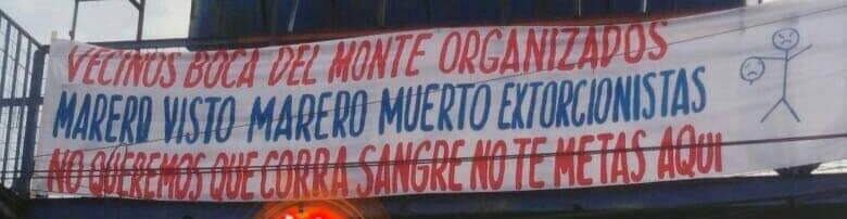 “Vecinos de Boca del Monte Organizados. Marero visto, marero muerto. No queremos que corra sangre, no te metas aquí”, se lee en la manta.