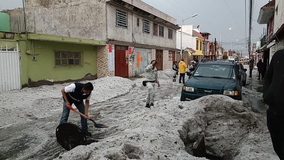 No se trata del Polo Norte, si no del Estado de Puebla en México. Una densa capa de granizo vistió de blanco, las calles de esa región.